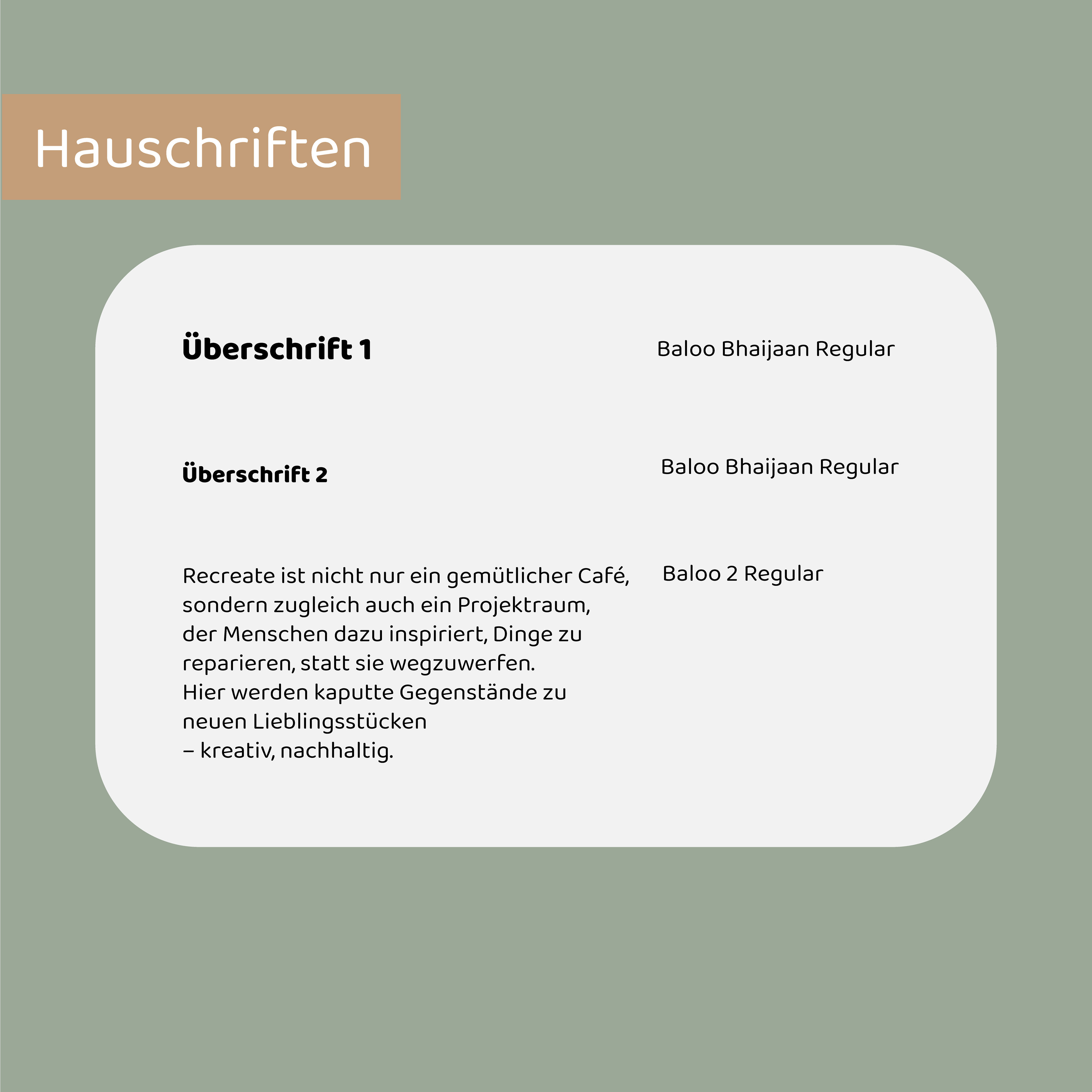 Schulprojekt: Wir hatten die Aufgabe, ein Logo für das Café namens „Recreate” zu entwerfen, in dem man auch Dinge reparieren lassen kann. Außerdem mussten die Typografie, die Farbpalette und die Bilder ausgewählt werden, die zum eigenen Design passen. Das Projekt war meiner Meinung nach eine wirklich gute Erfahrung und Übung, da während des Designprozesses viele Dinge beachtet werden mussten. Ich möchte auch erwähnen, dass ich viel Zeit investiert habe, um eine Idee zu finden. Es mag einfach und leicht aussehen, aber es gibt viel zu tun. Es geht nicht darum, perfekte Ergebnisse zu erzielen, sondern eher darum, Dinge zu schaffen, über die wir sprechen und durch Feedback miteinander in Verbindung treten können. In diesem Sinne: Lass mich wissen, was du über meine Arbeit denkt.